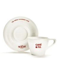 Finally, within everyone's reach, the La Mexicana mug. A porcelain cup for cappuccino in which our baristas strive to prepare the best coffees. A cup with which to boast of consuming a good coffee. Includes porcelain cup and plate.